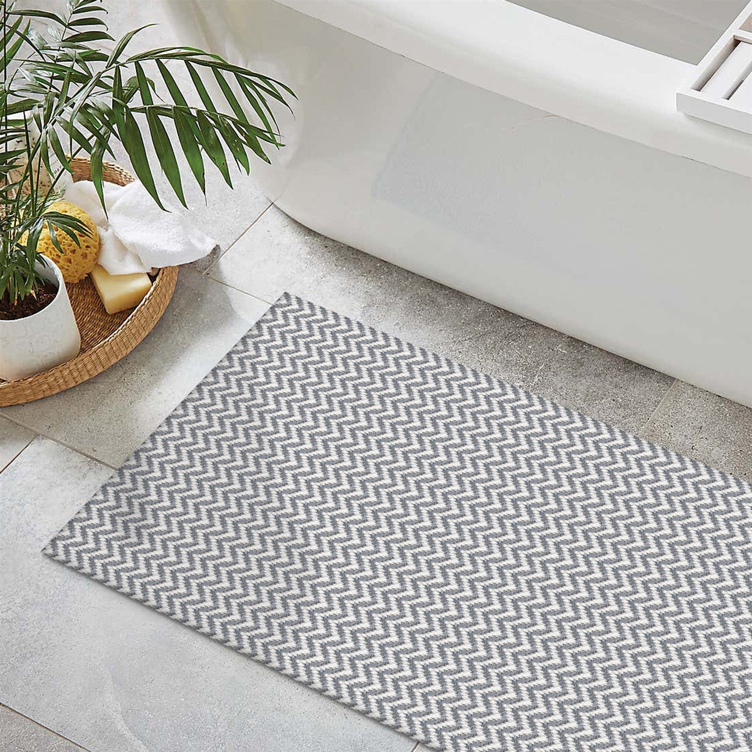 Contém 1 Tapete de Porta Zig Zag 65cm x 45cm Cinza
