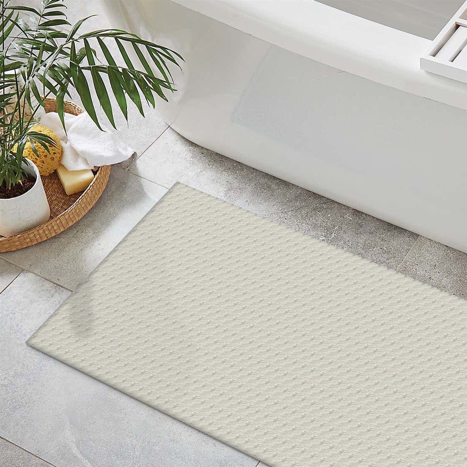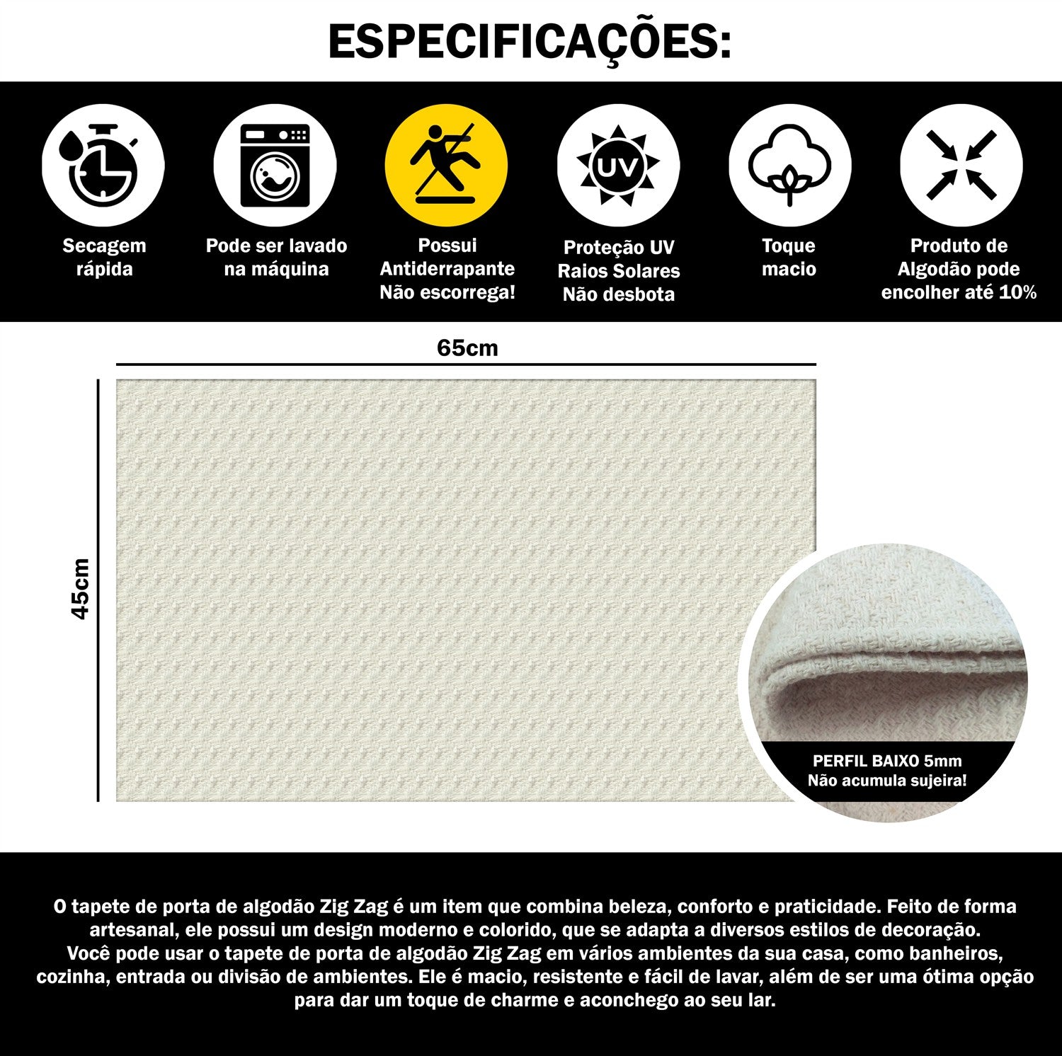 Contém 1 Tapete de Porta Zig Zag 65cm x 45cm Cru