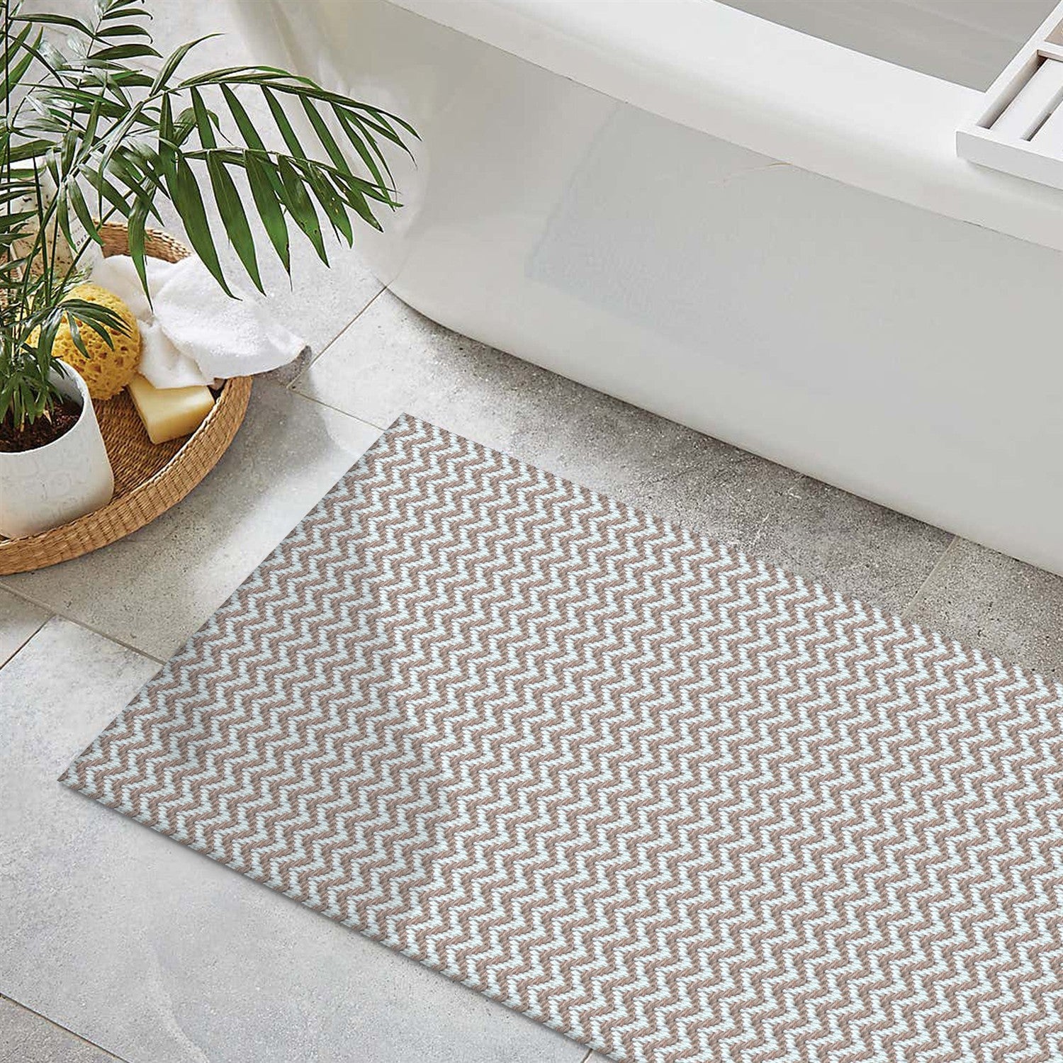 Contém 1 Tapete de Porta Zig Zag 65cm x 45cm Nude