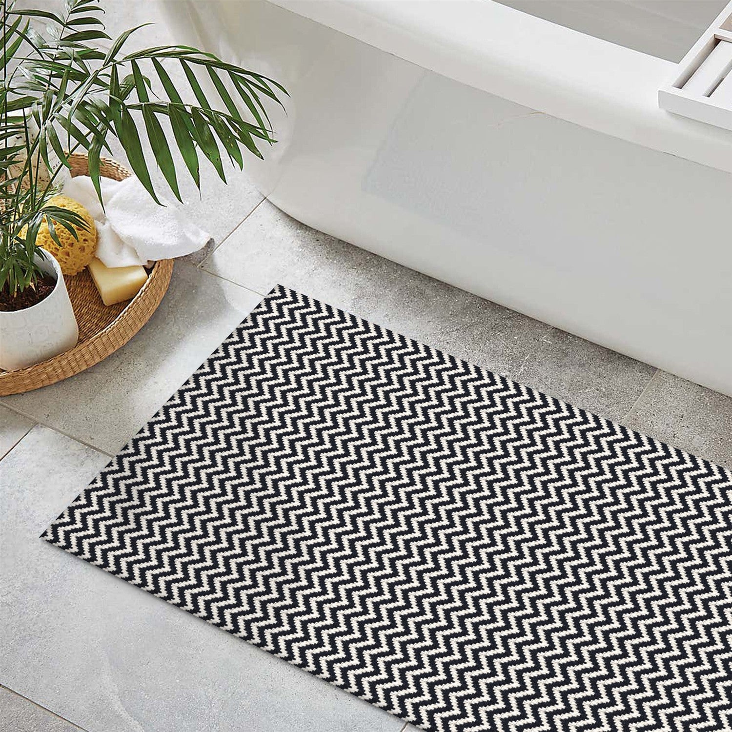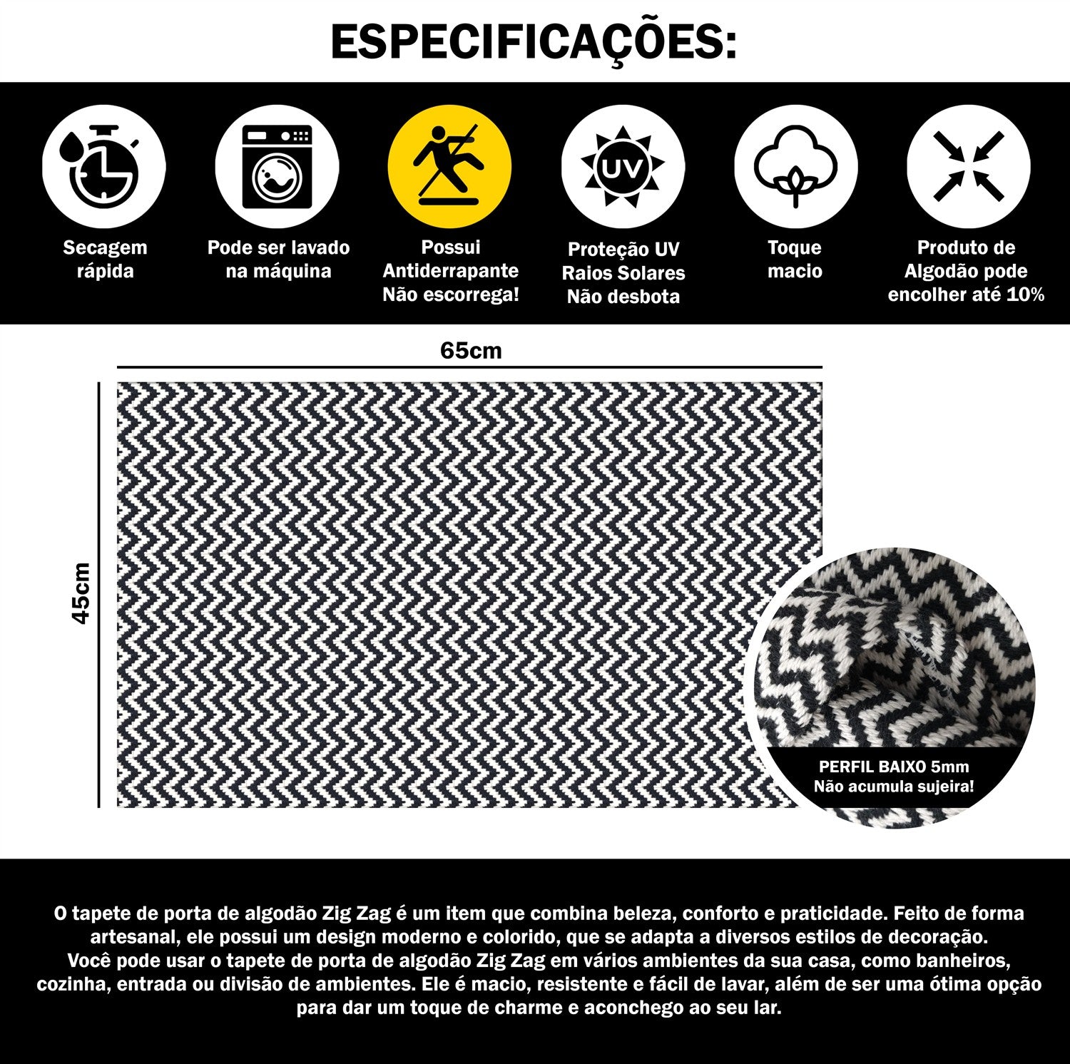Contém 1 Tapete de Porta Zig Zag 65cm x 45cm Preto