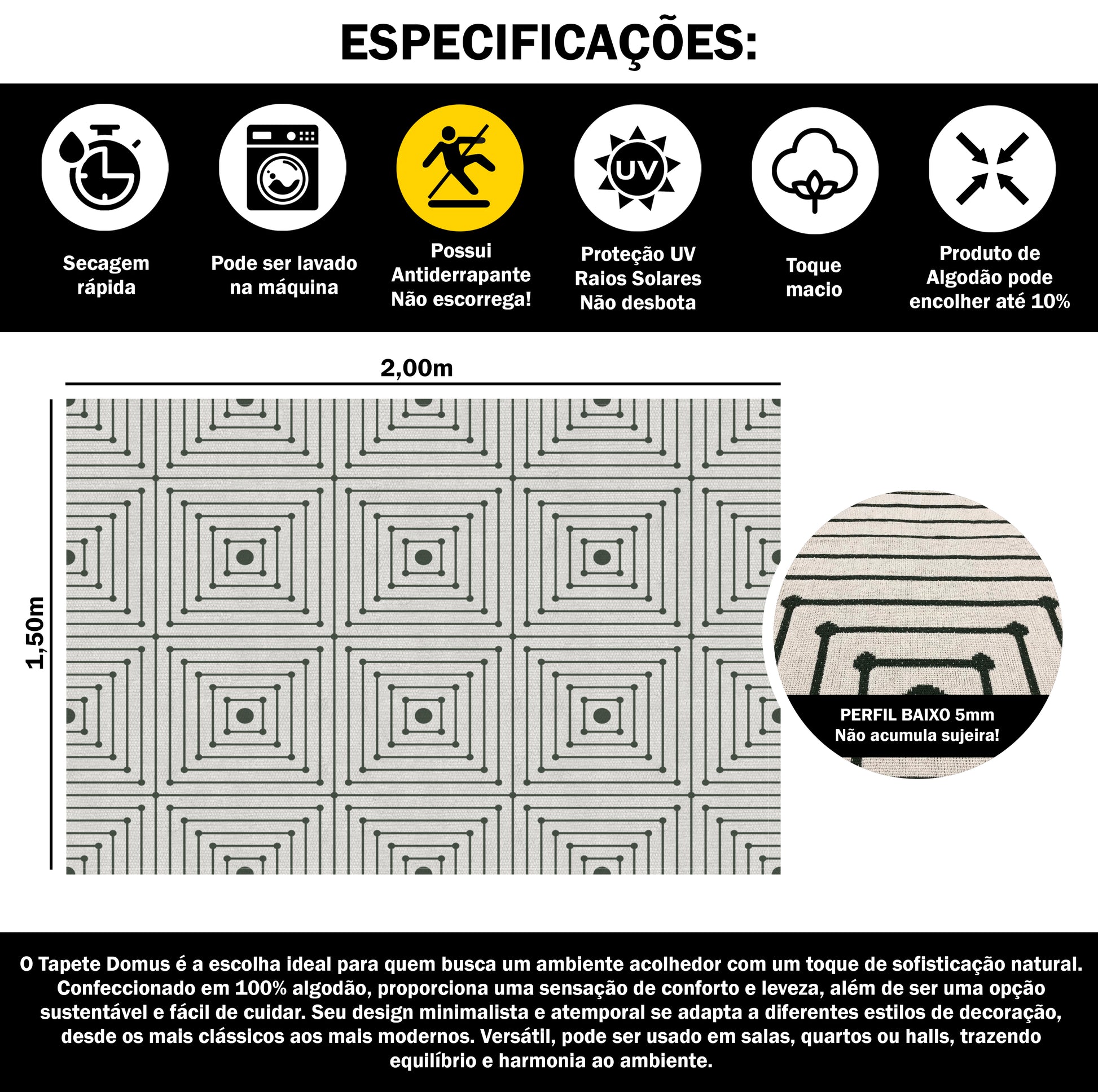 Características Incomparáveis Design Moderno: Inspirado em traços Domus, do latim, significa lar. Esse nome carrega mais: é o design que habita, que conversa com sua arquitetura interior. Um tapete que vai além do tempo, vestindo a casa com sofisticação e silêncio elegante. Domus é onde o morar se transforma em experiência. Esse tapete é a escolha perfeita para quem deseja modernizar o espaço.