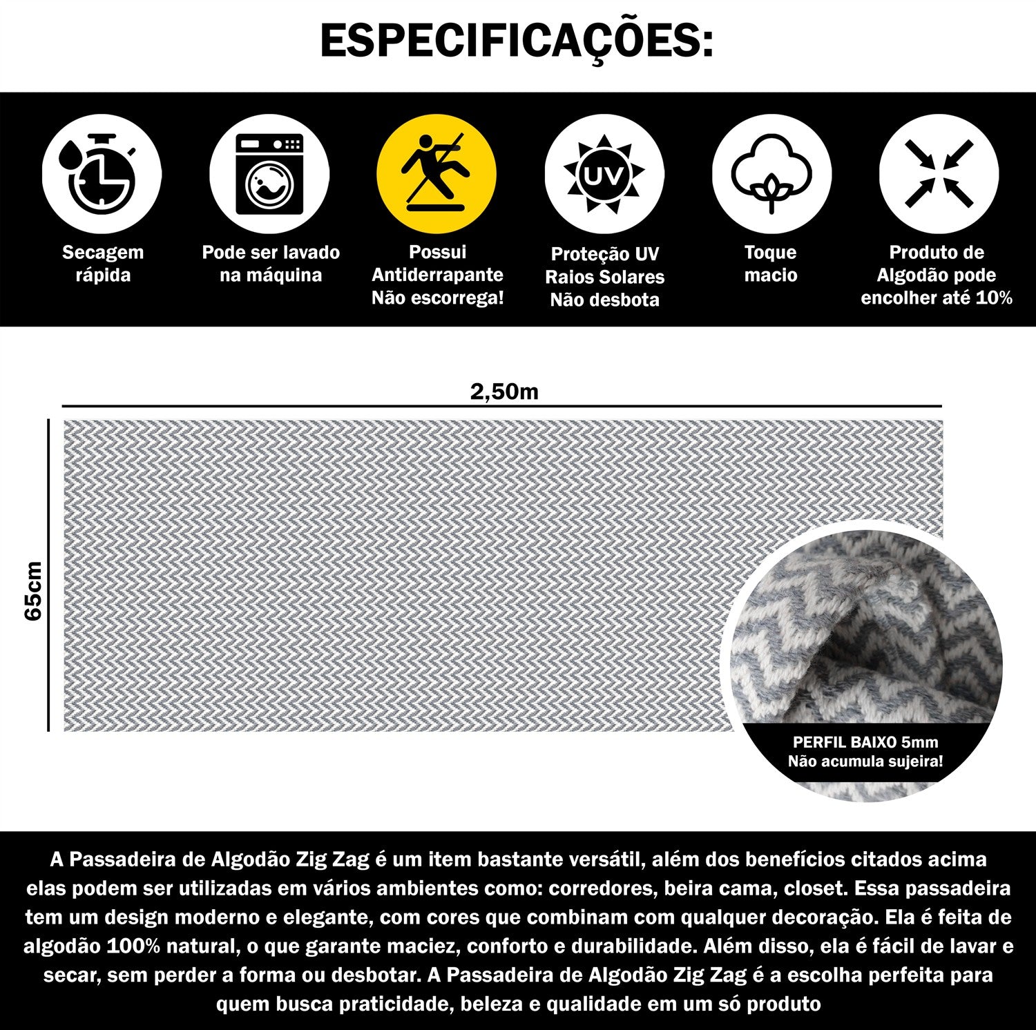 Contém 1 Tapete Passadeira Linha Zig Zag 2,50m x 0,65m Cinza