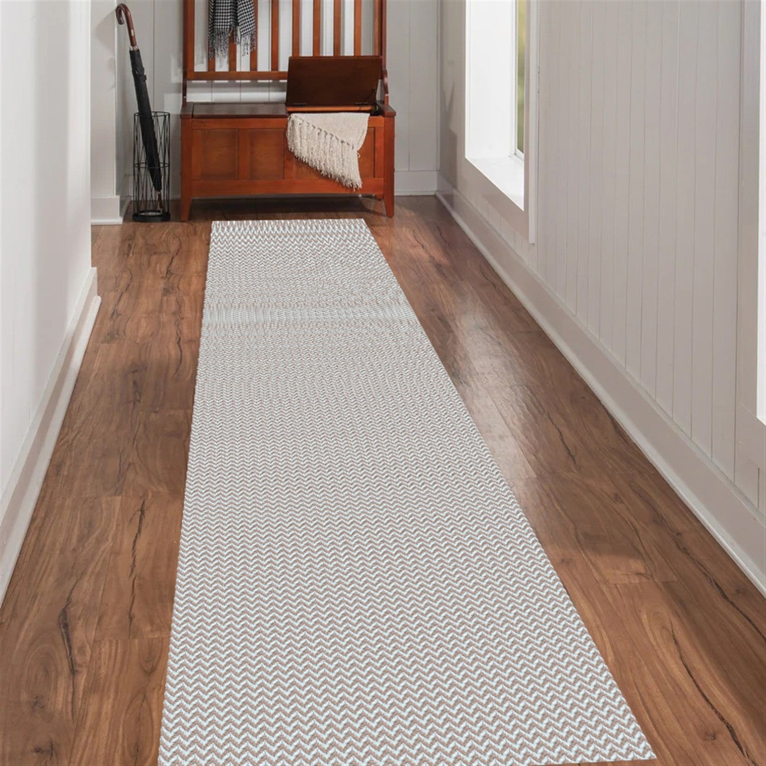 Passadeira Antiderrapante 300x65cm Beira de Cama Zig Zag Nude