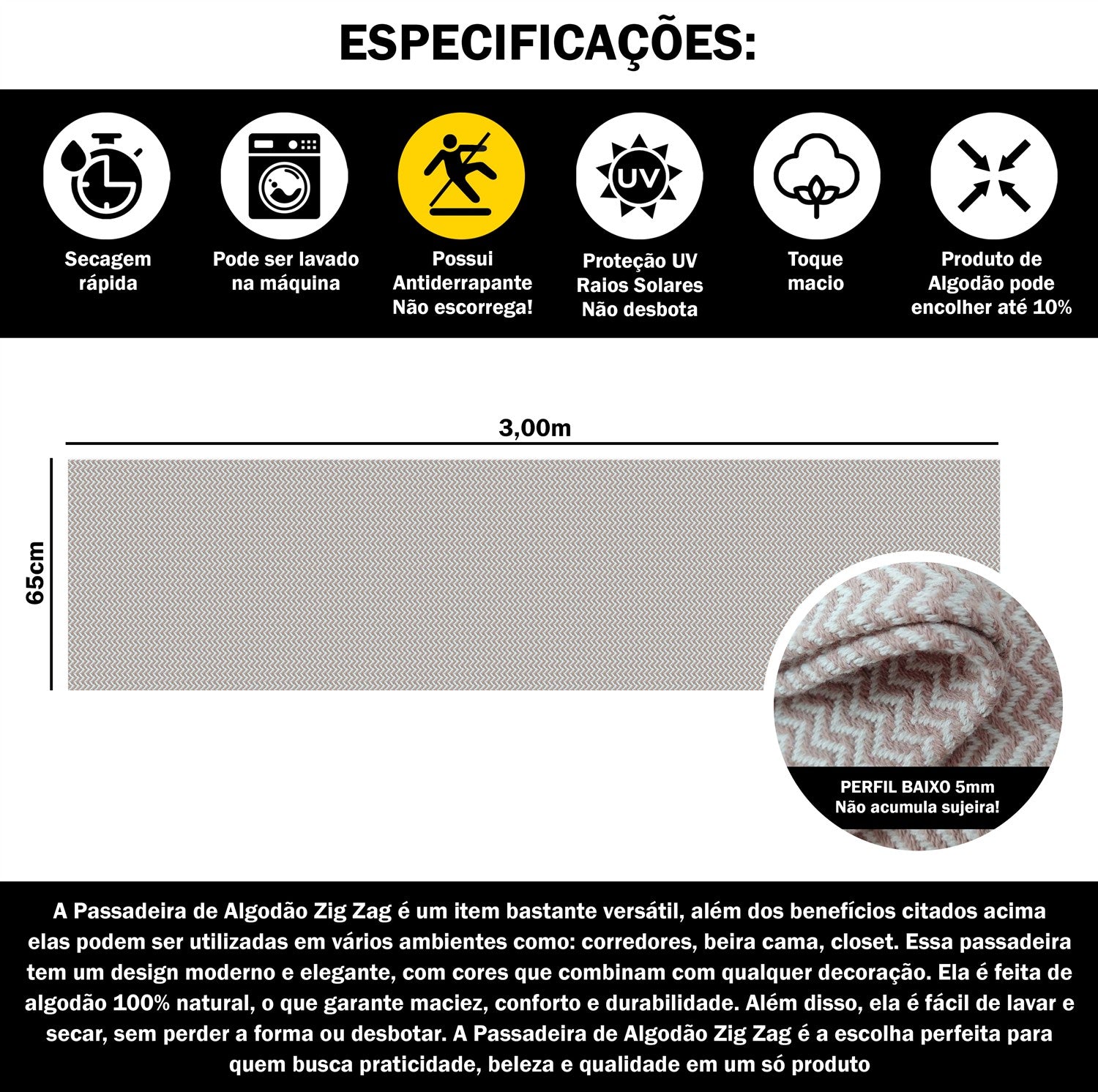 Contém 1 Tapete Passadeira Linha Zig Zag 3,00m x 0,65m Nude