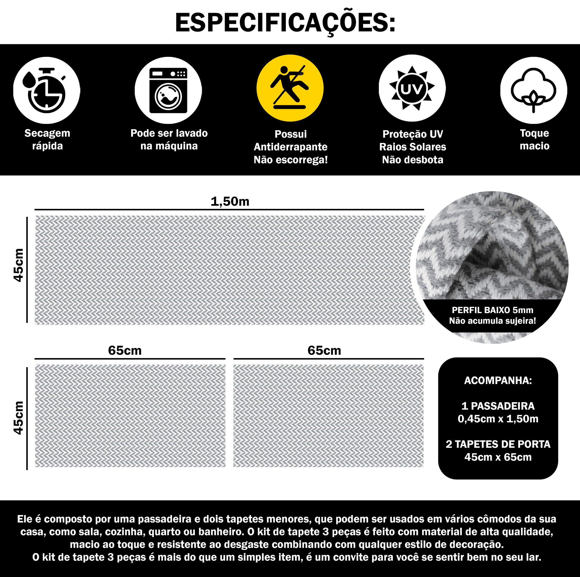 Kit Jogo de Tapete Zig Zag Cinza Contempla: