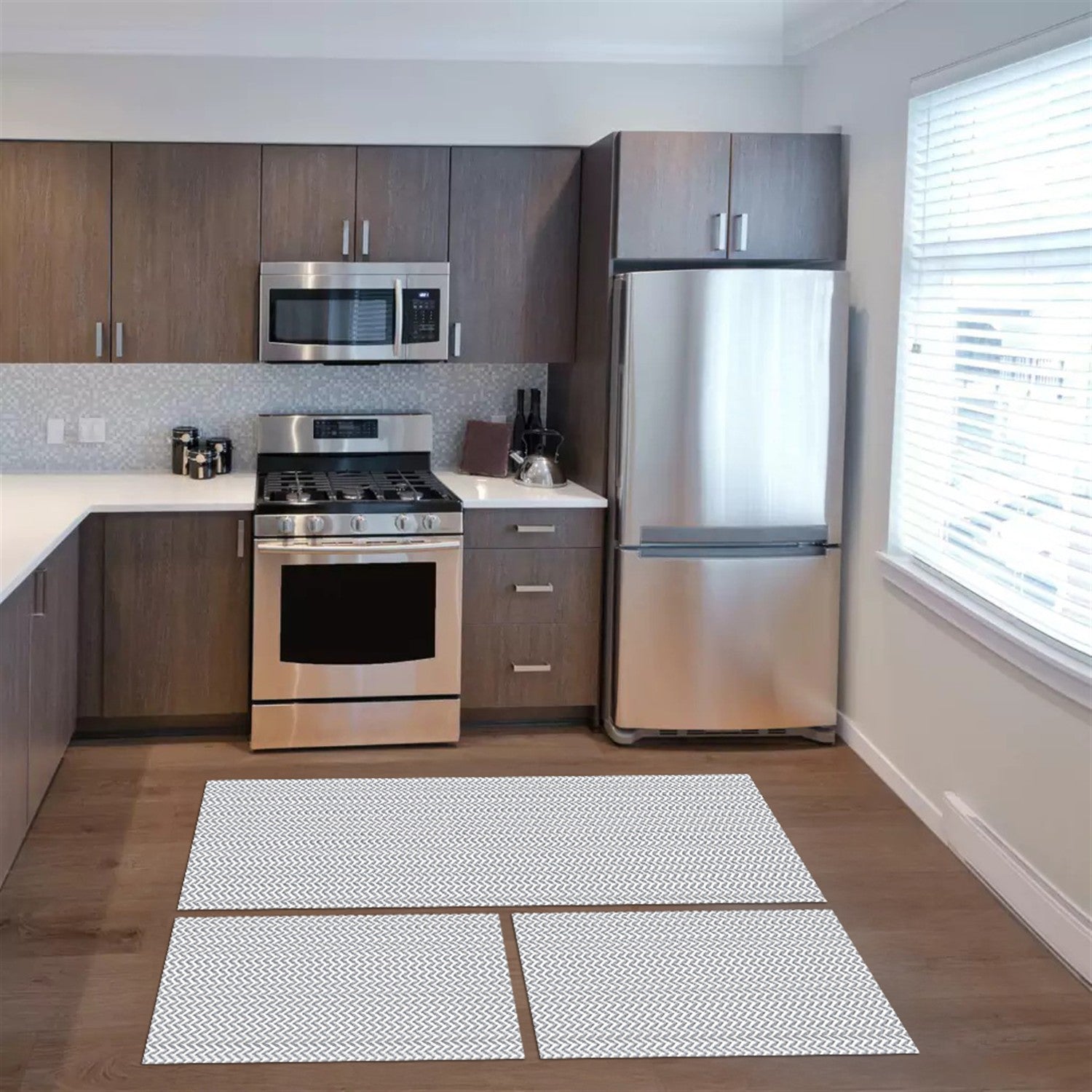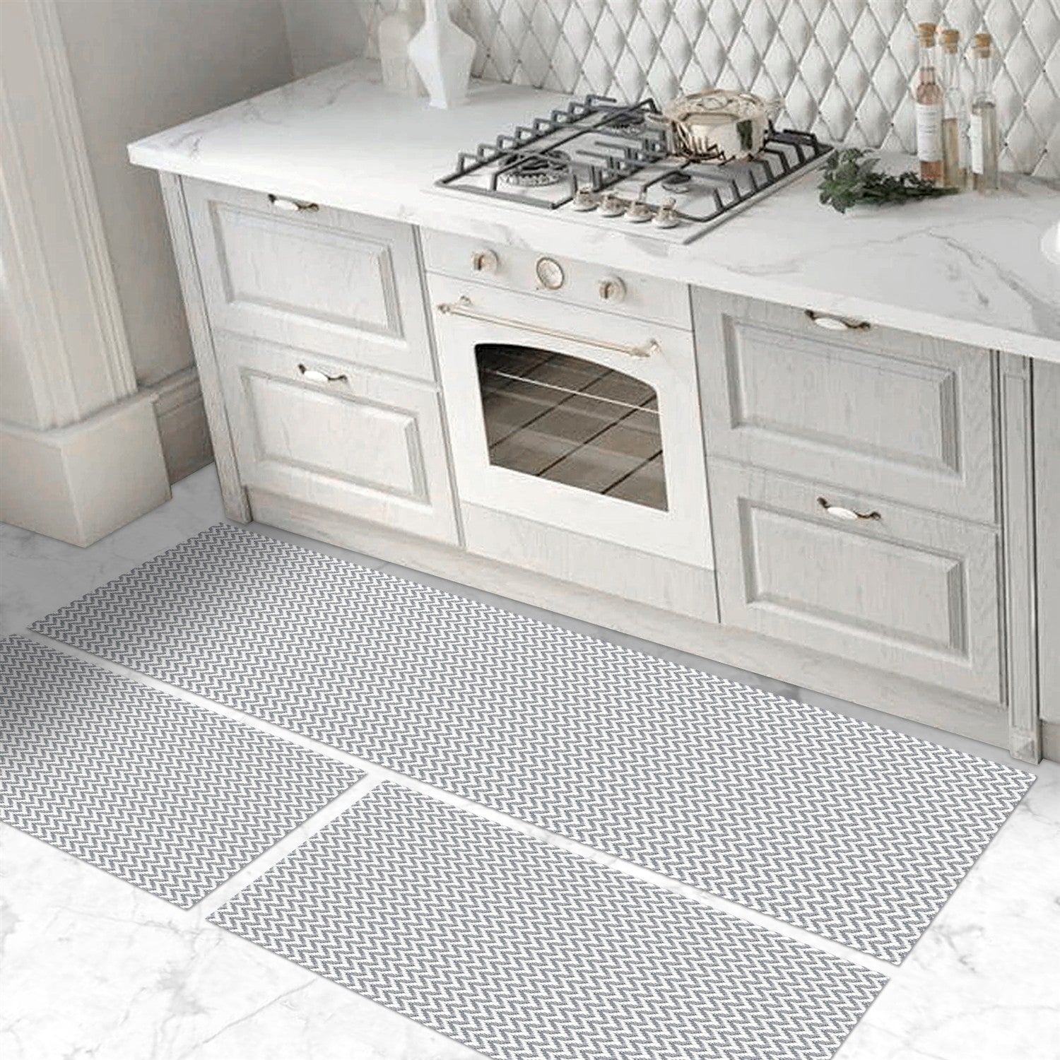 Tapete Passadeira Jogo de Cozinha 3 Peças Zig Zag - Cinza