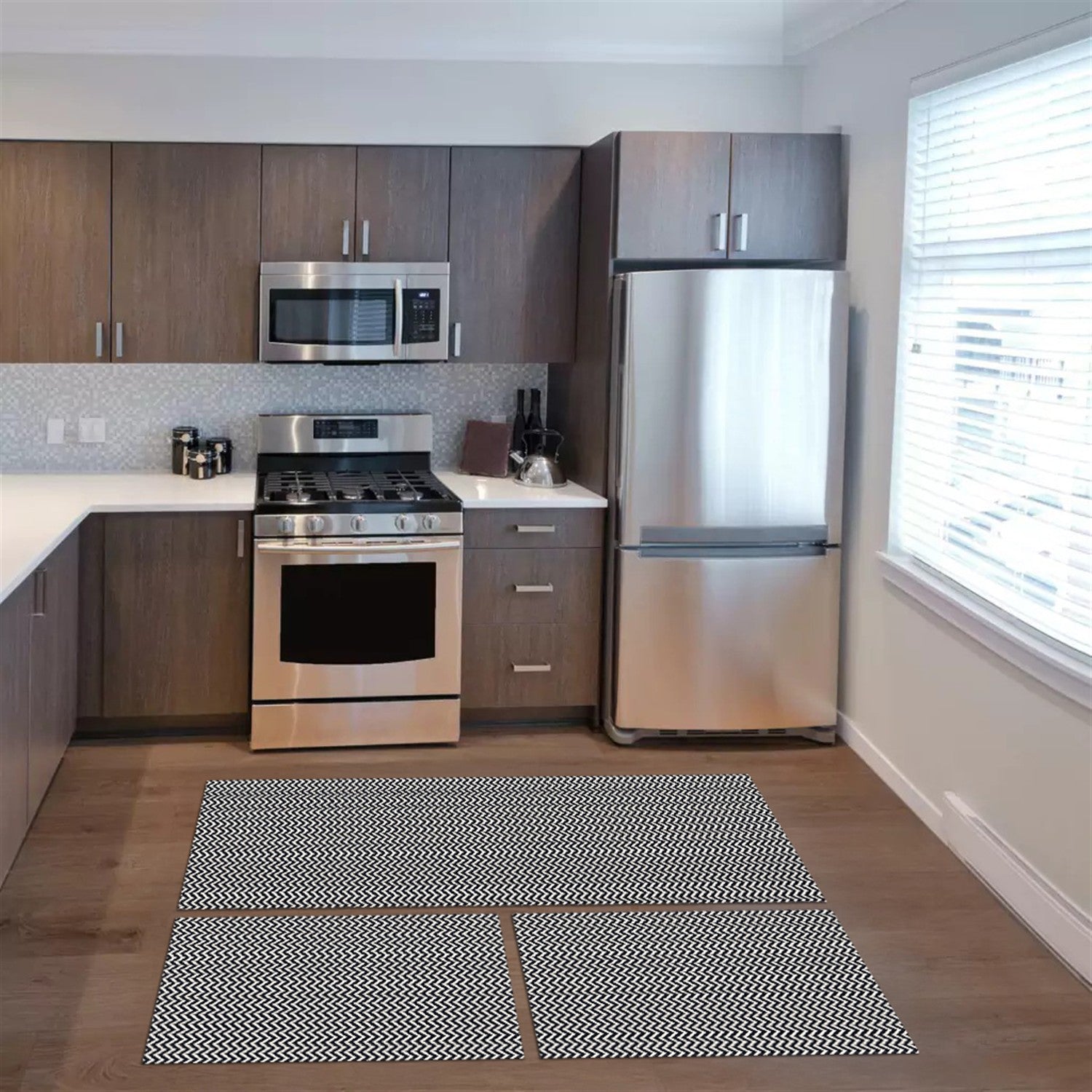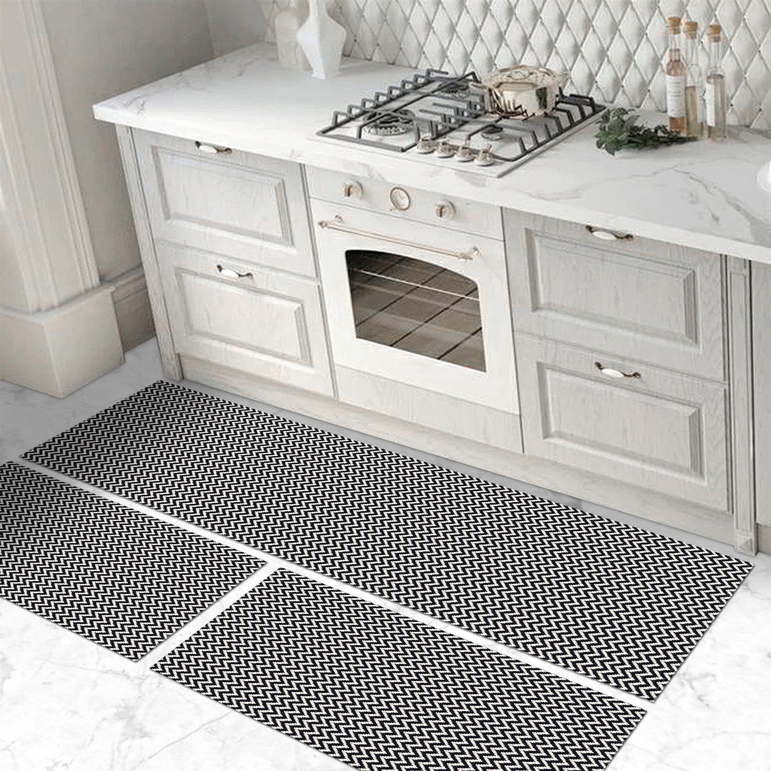 Tapete Passadeira Jogo de Cozinha 3 Peças Zig Zag - Preto