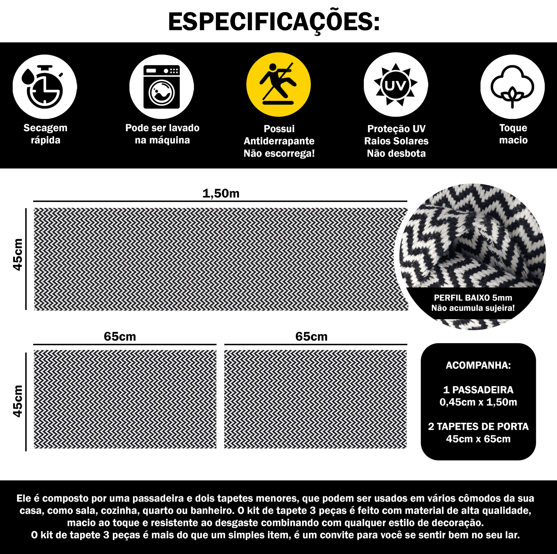 Kit Jogo de Tapete Zig Zag Preto Contempla: