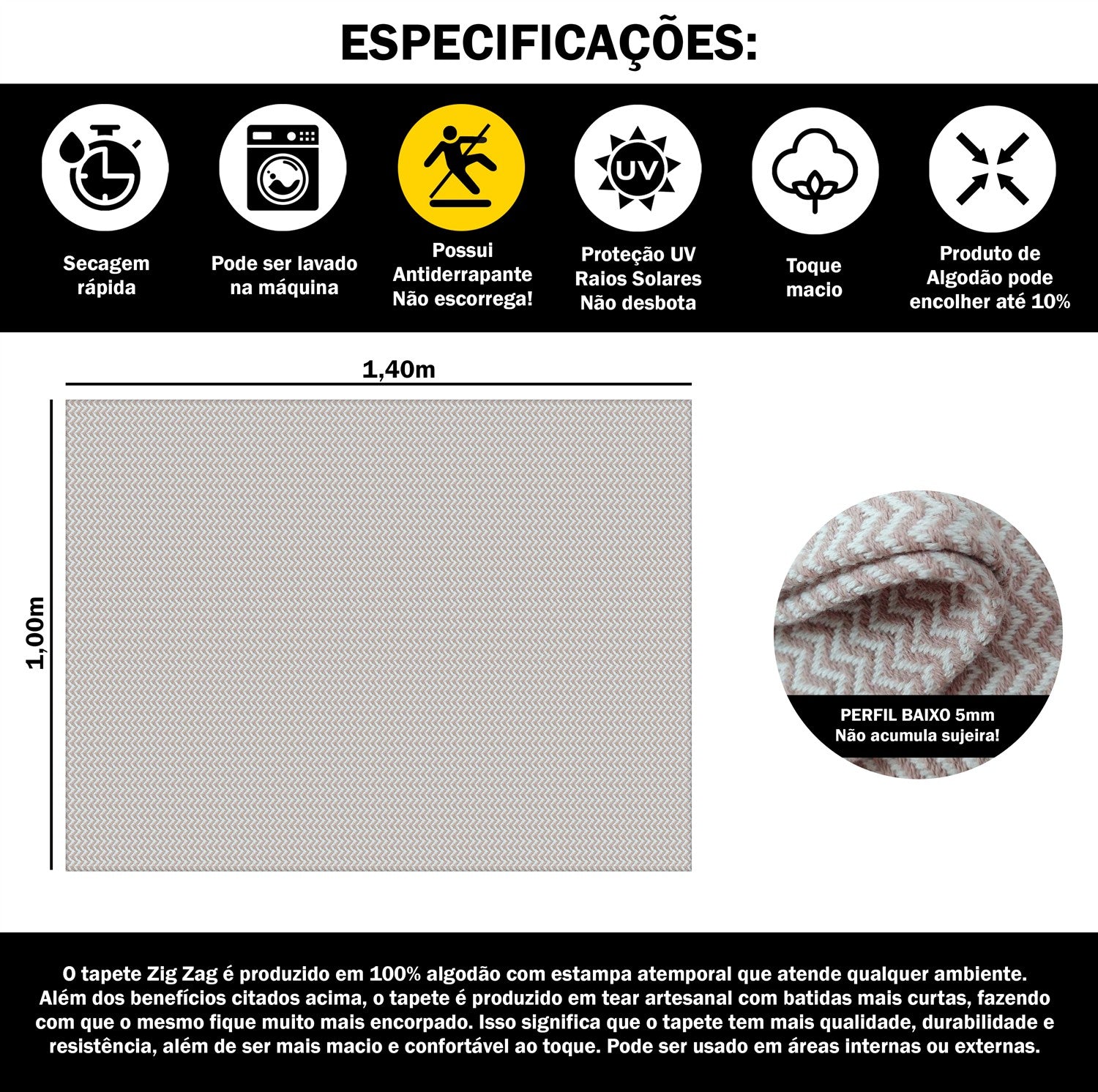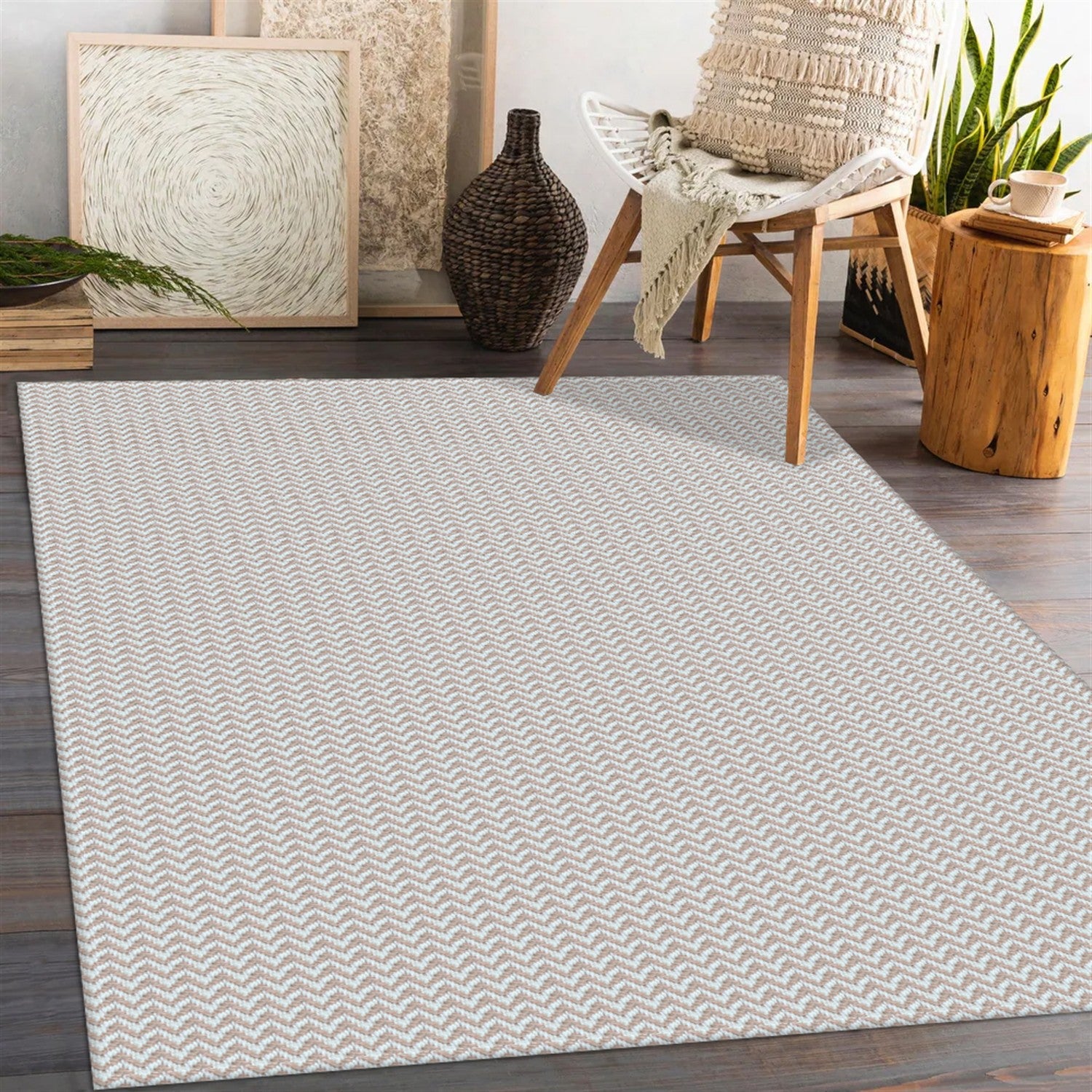 Tapete para Sala e Quarto 100x140cm Antiderrapante Zig Zag Nude