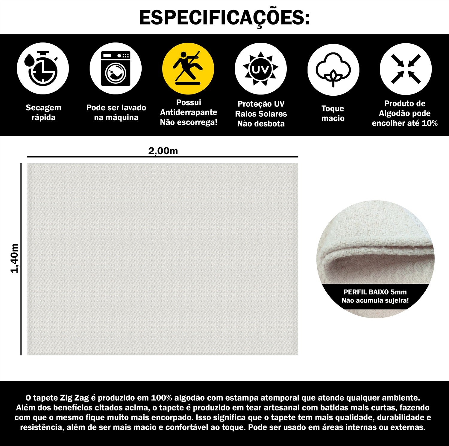 Tapete para Sala e Quarto 200x140cm Antiderrapante Zig Zag Cru