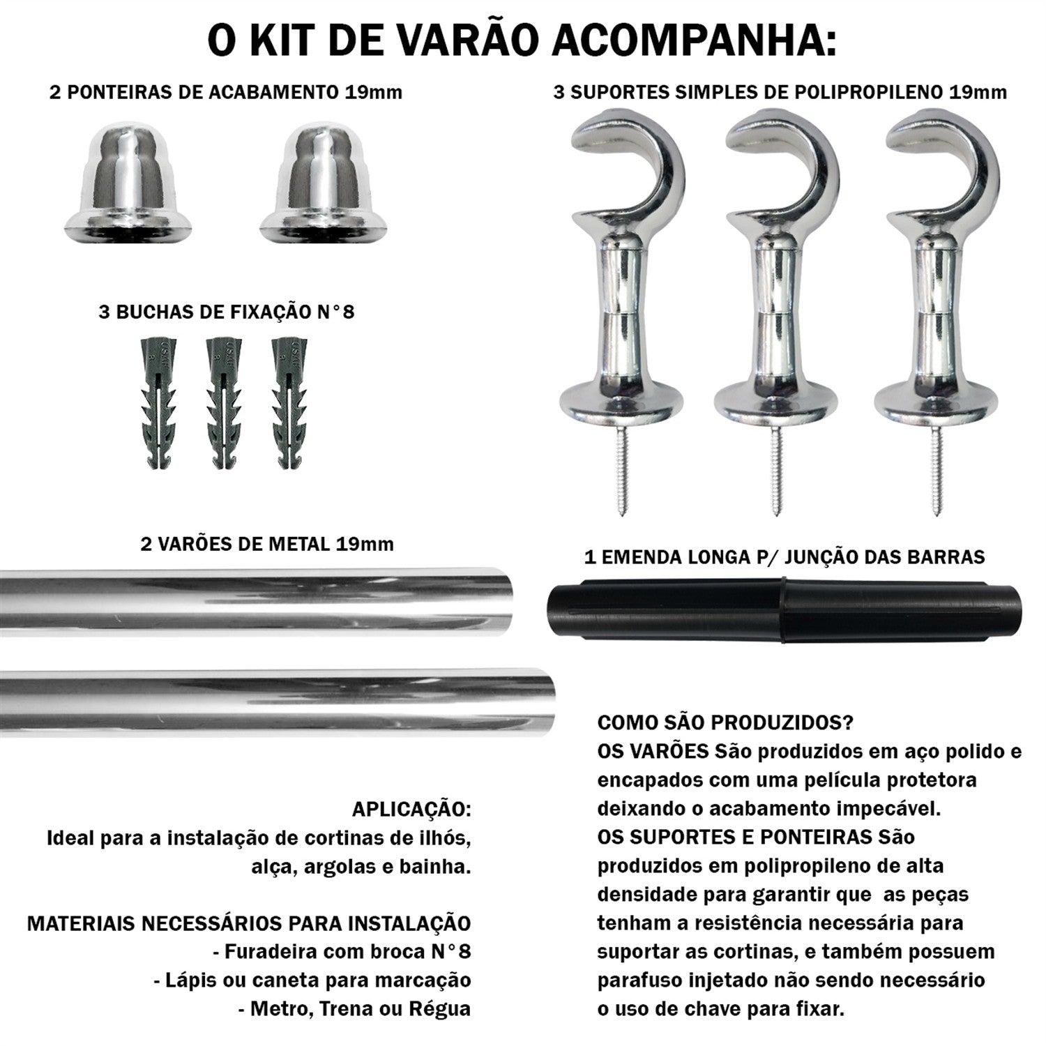 Varão de Cortina Simples 1,50m 19mm Simples 5 Cores