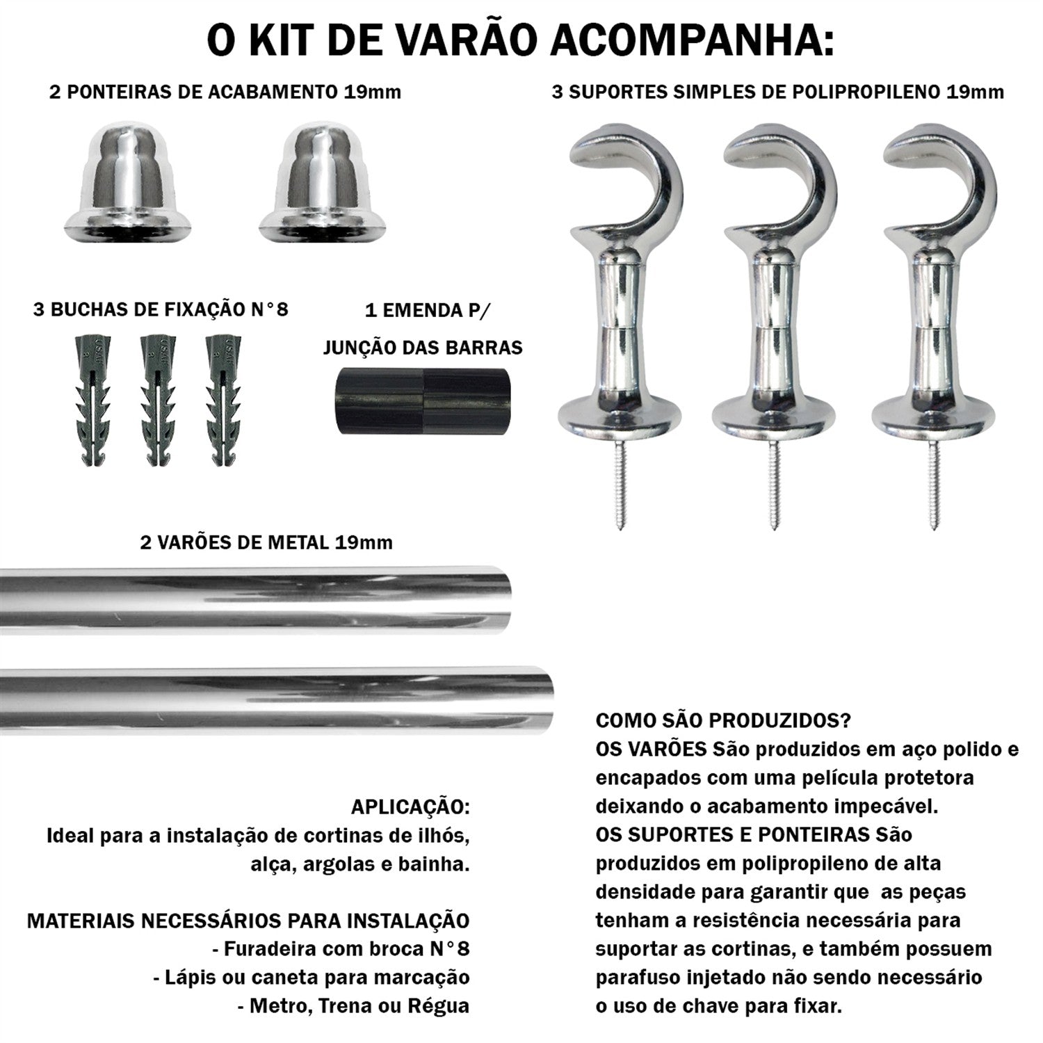- 2 ponteiras para acabamento do varão;
