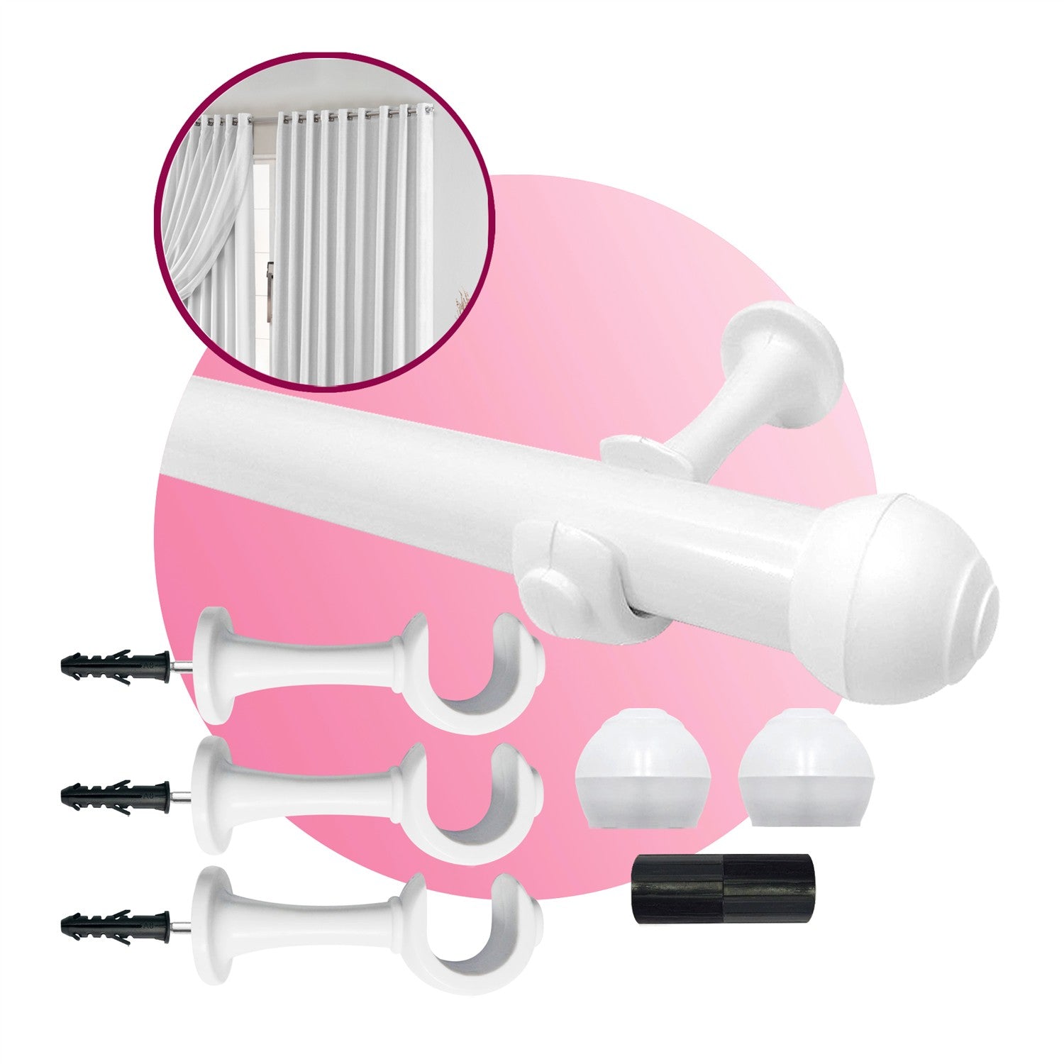 Kit Varão para cortina simples com 1,50 metros de comprimento.