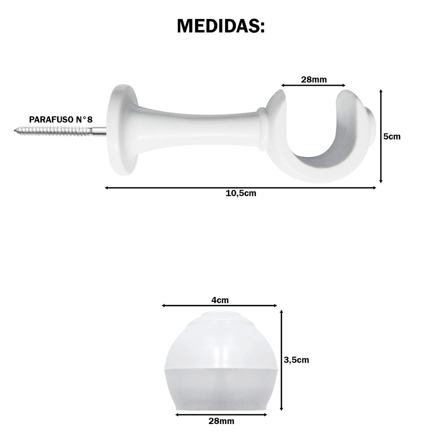 - 3 suportes com buchas e parafusos 8mm para instalação;