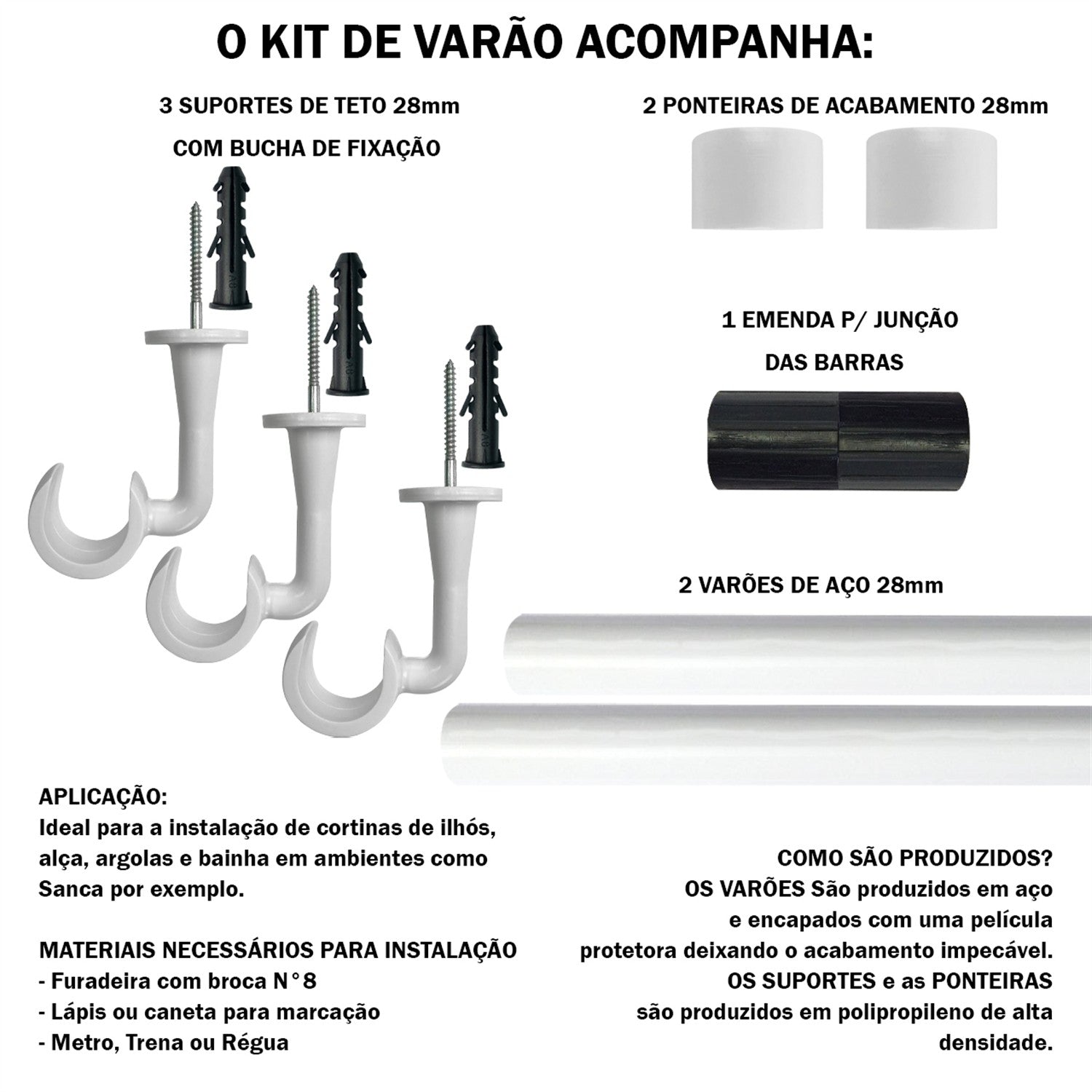 - Todos os itens são compatíveis com 100% das cortinas de ilhós ou argolas.