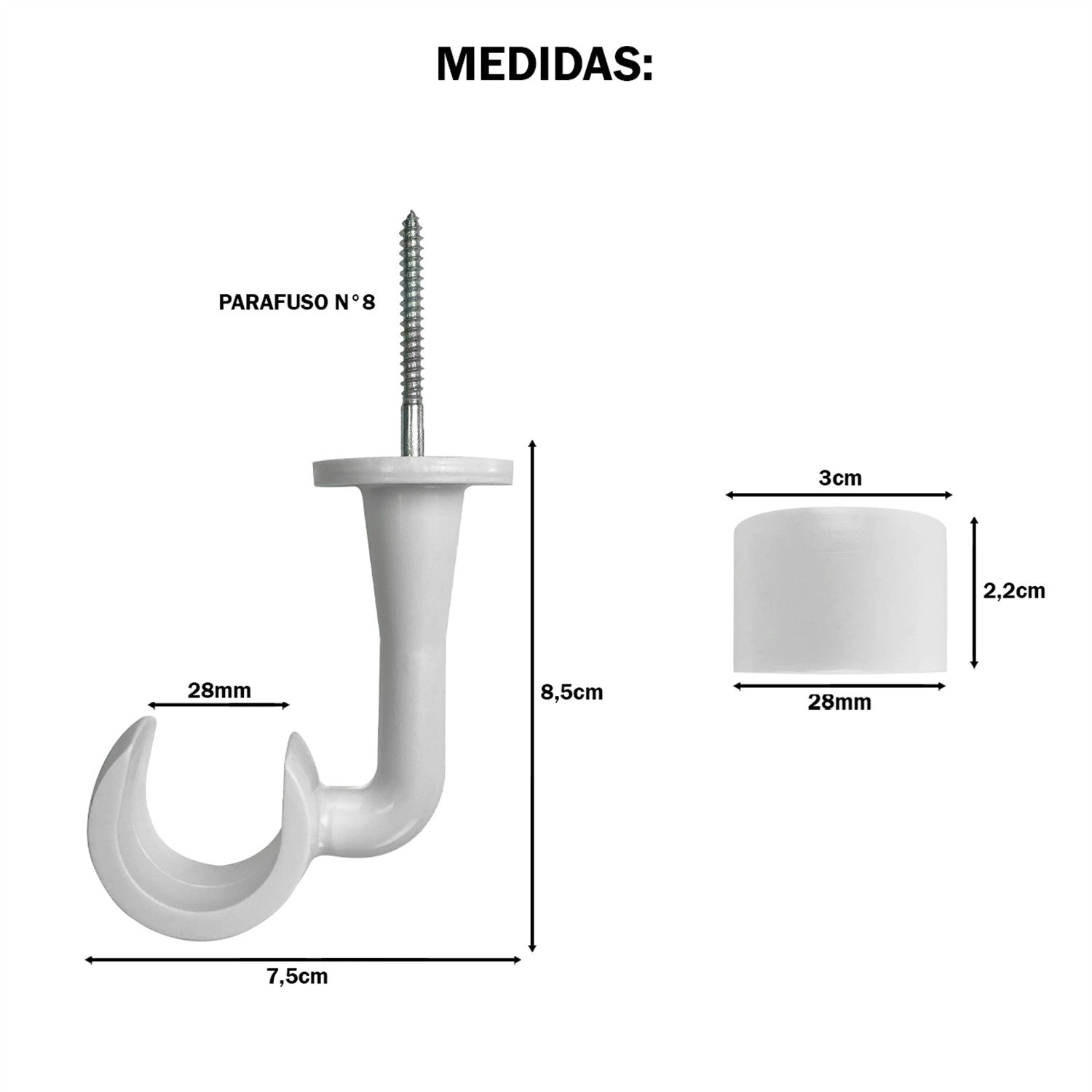3 Suportes de Teto de 28mm;