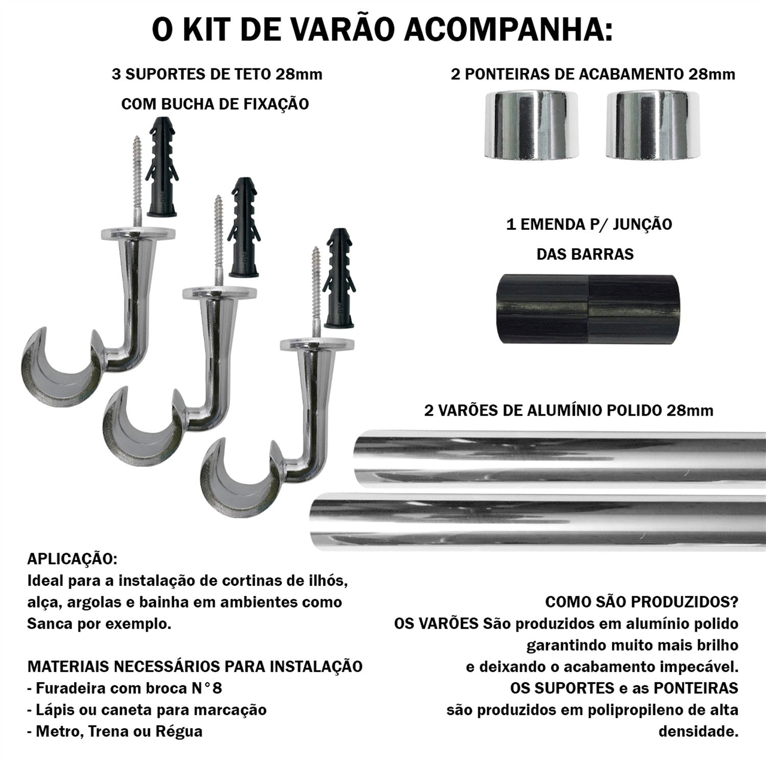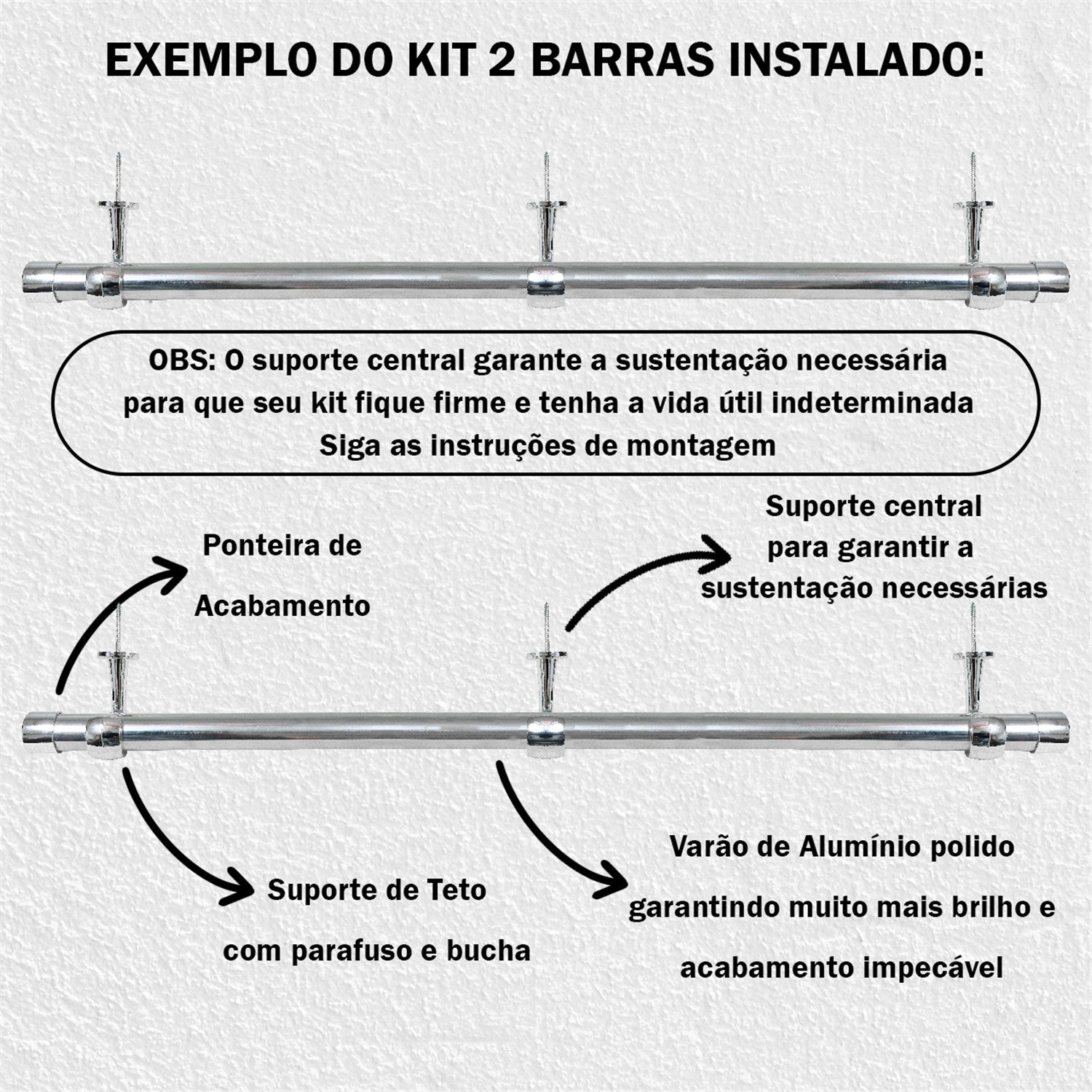 3 Suportes de Teto  28mm (Obrigatoriamente 1 deverá ser instalado ao centro e os outros nas extremidades);