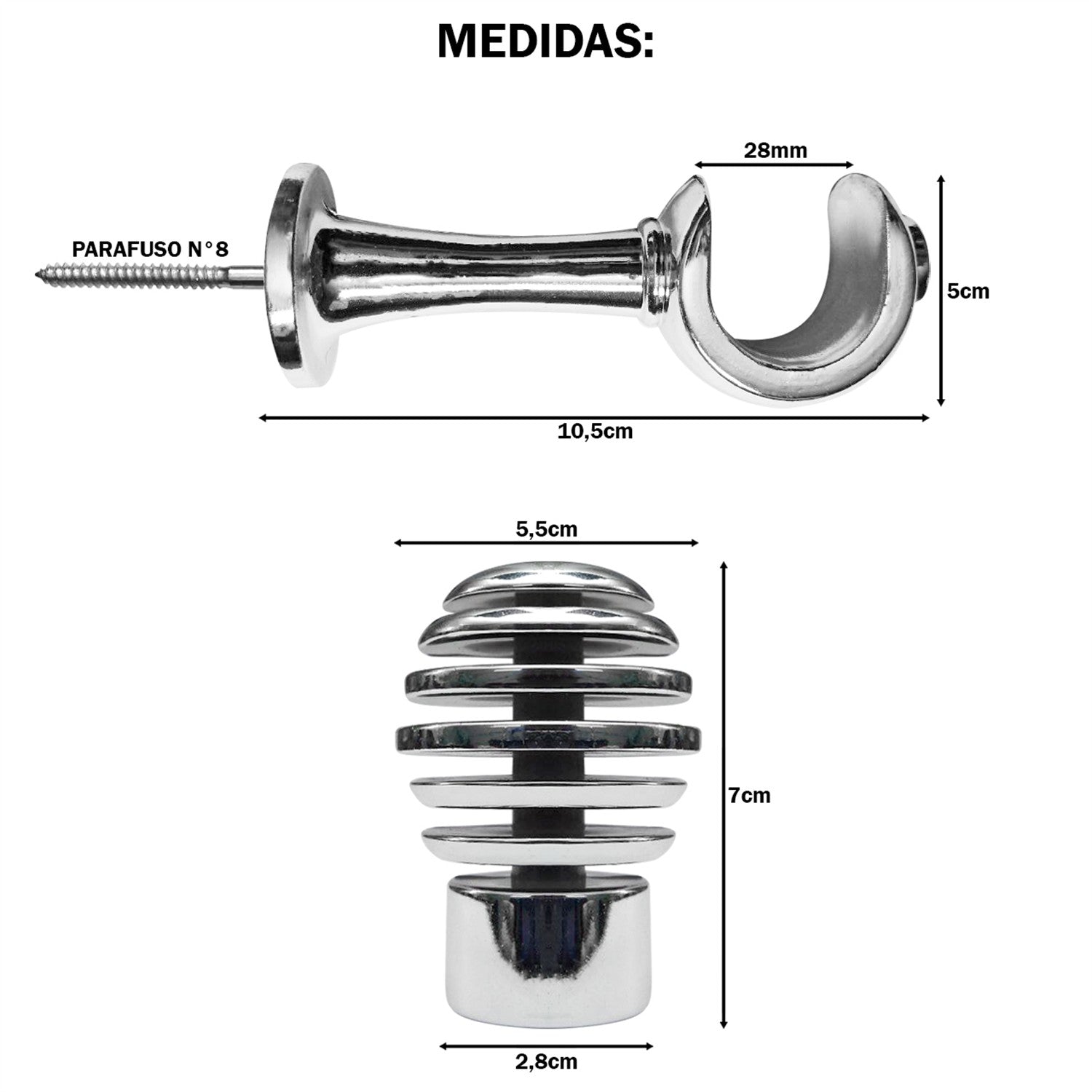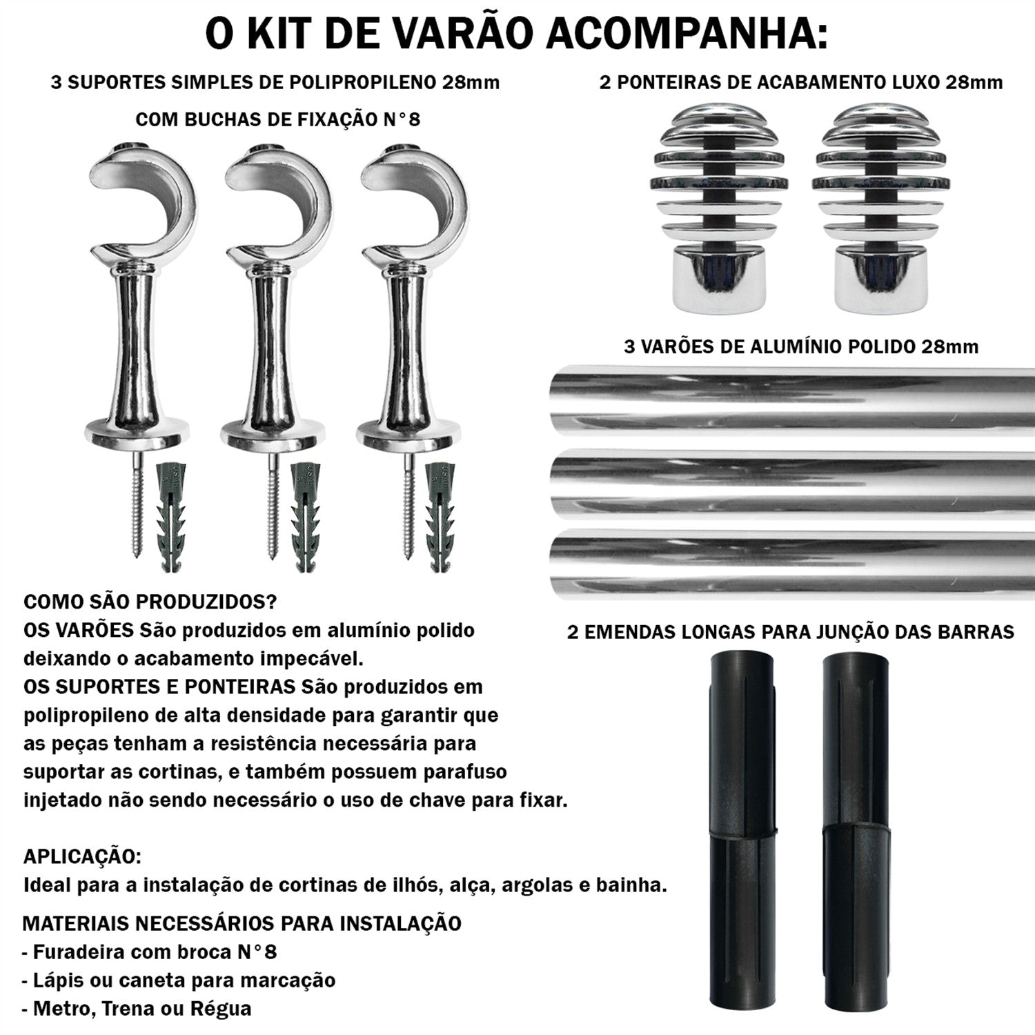 Varão com 28mm de Diâmetro, ou seja, ele é o mais RESISTENTE do mercado, aguentando qualquer cortina.